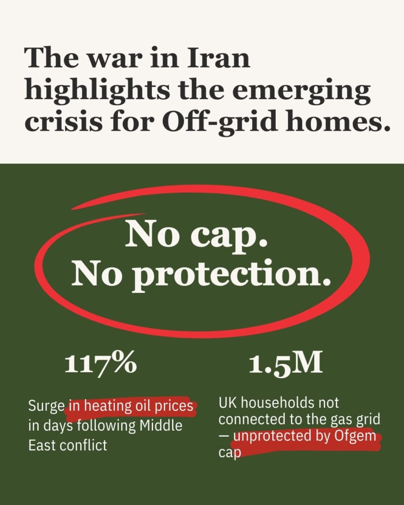 “In a matter of days since the war began with Iran, we’ve seen off grid oil prices surge by more than 100%, leaving thousands of UK rural households extremely vulnerable to off grid energy price fluctuations.
